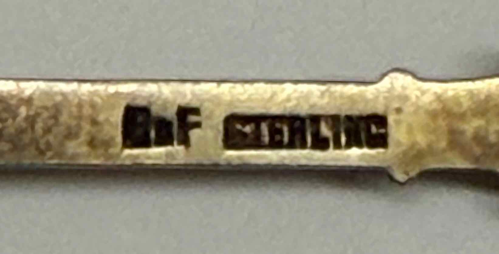 B[?] and F separated by a smaller character are on the back along with “STERLING”.