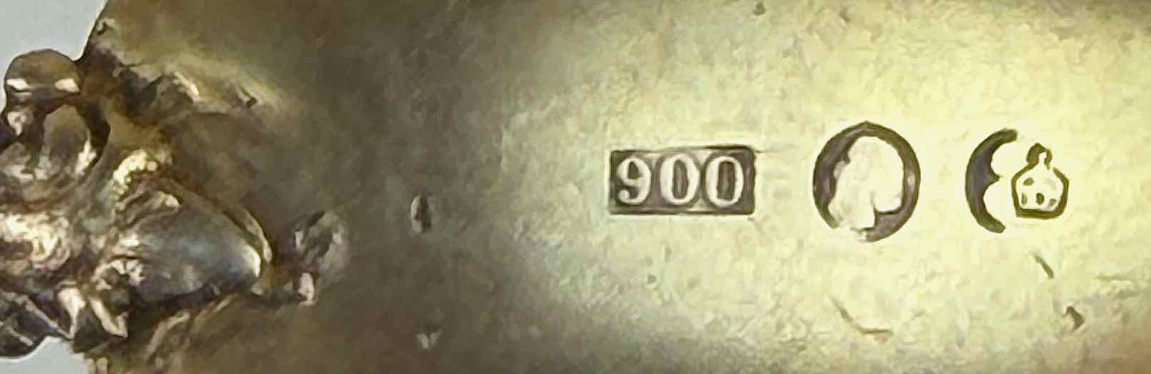 The 900 stamped into the back of the spoon represents the silver purity, namely 900/1000.