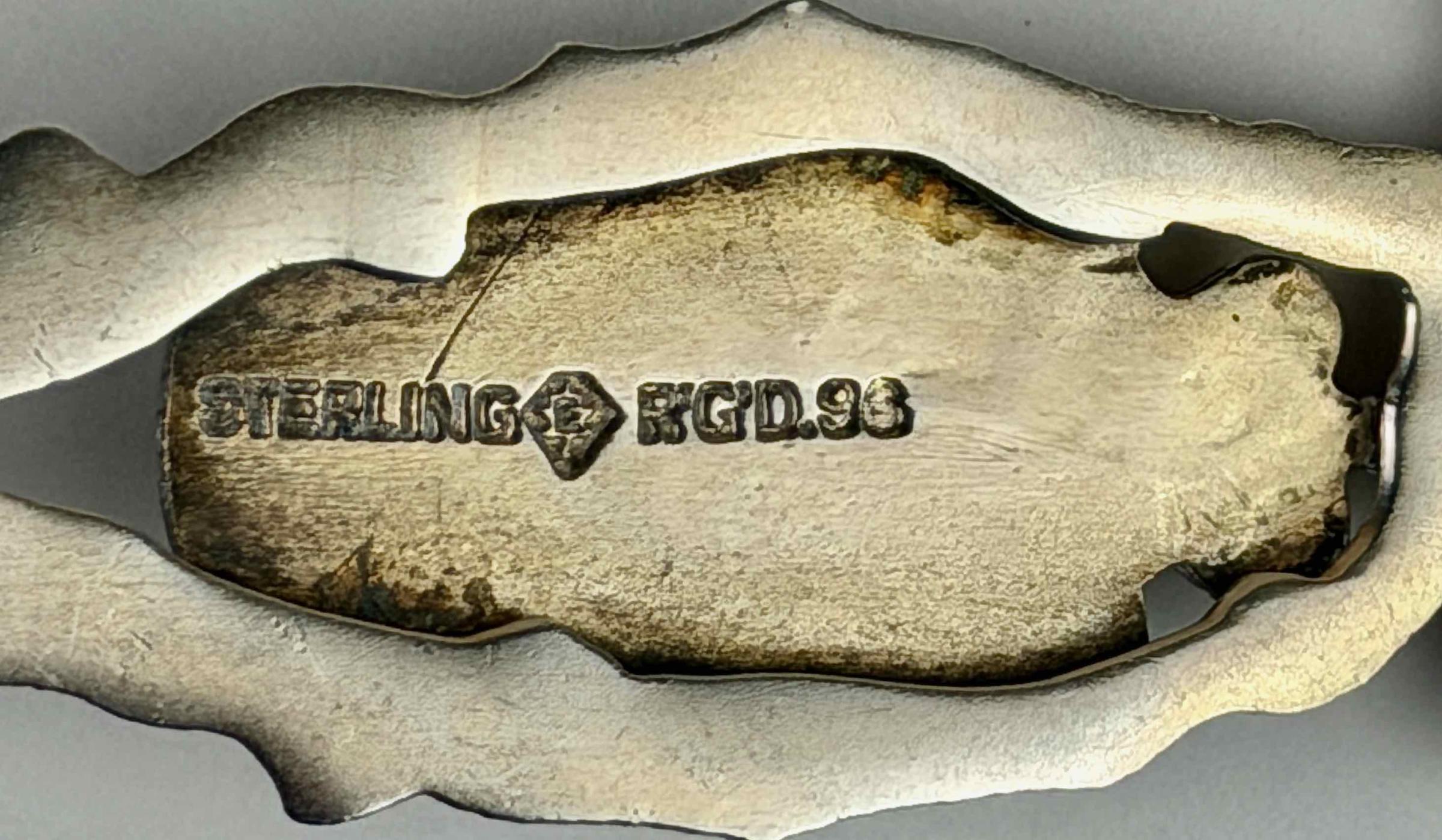 “CONCORDIA SALUS [“well-being through harmony”] / MONTREAL” is in the crest at the tip of the handle. “ST.PETERS MONTREAL. / CATHEDRAL” is in the bowl. The handle back is struck twice with “STERLING” and “E” within a maple leaf touchmark. “R’G’D.96” accompanies the marks in the back of the handle tip.