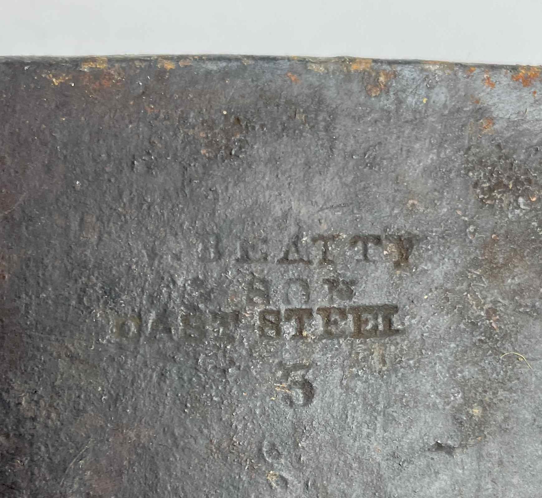 “W. BEATTY / & SON / CAST STEEL / 3” is stamped into one face of the ax head.