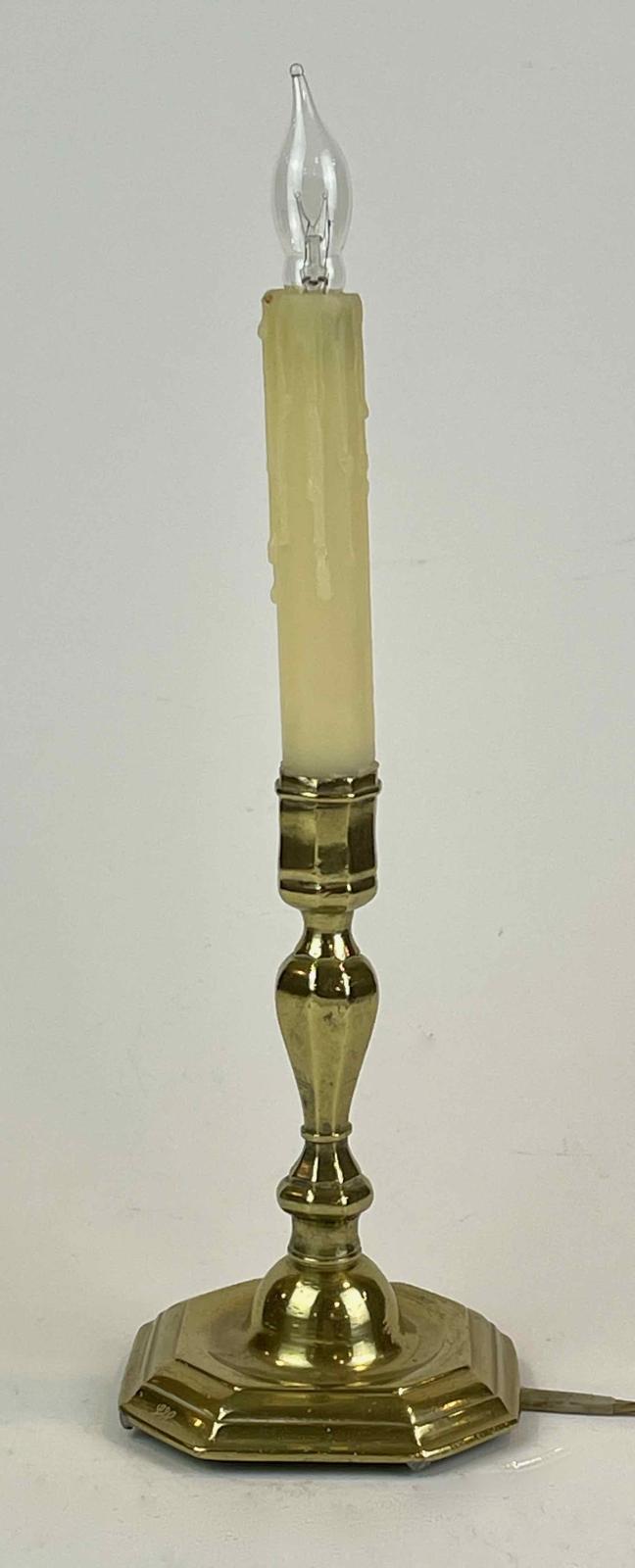 The candlestick has been electrified. Four small beads have been soldered onto the bottom corners to raise the candlestick upward to accommodate the electric wire.