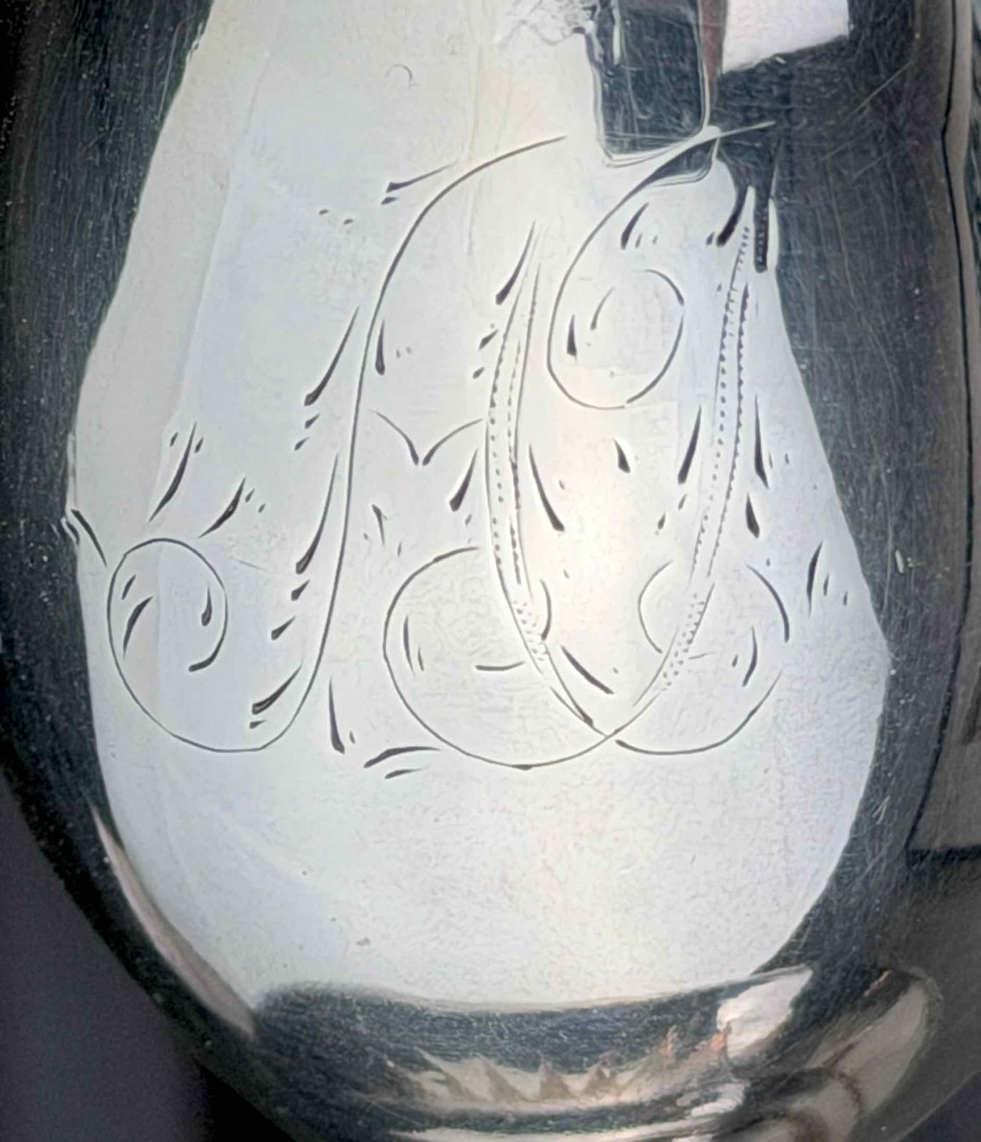 "AJ" is engraved in foliate script on one side of the ovoid baluster in the center of the shaft.