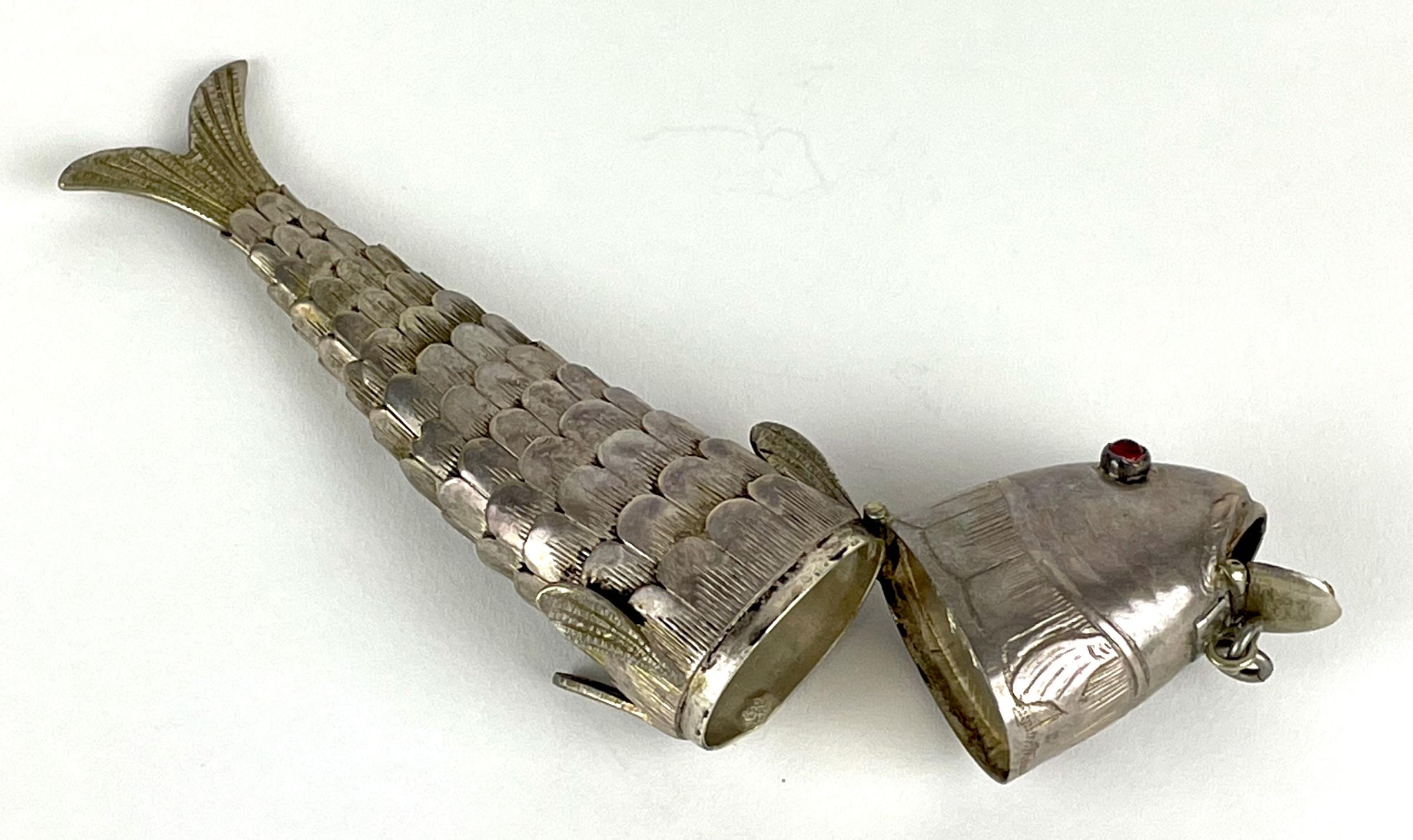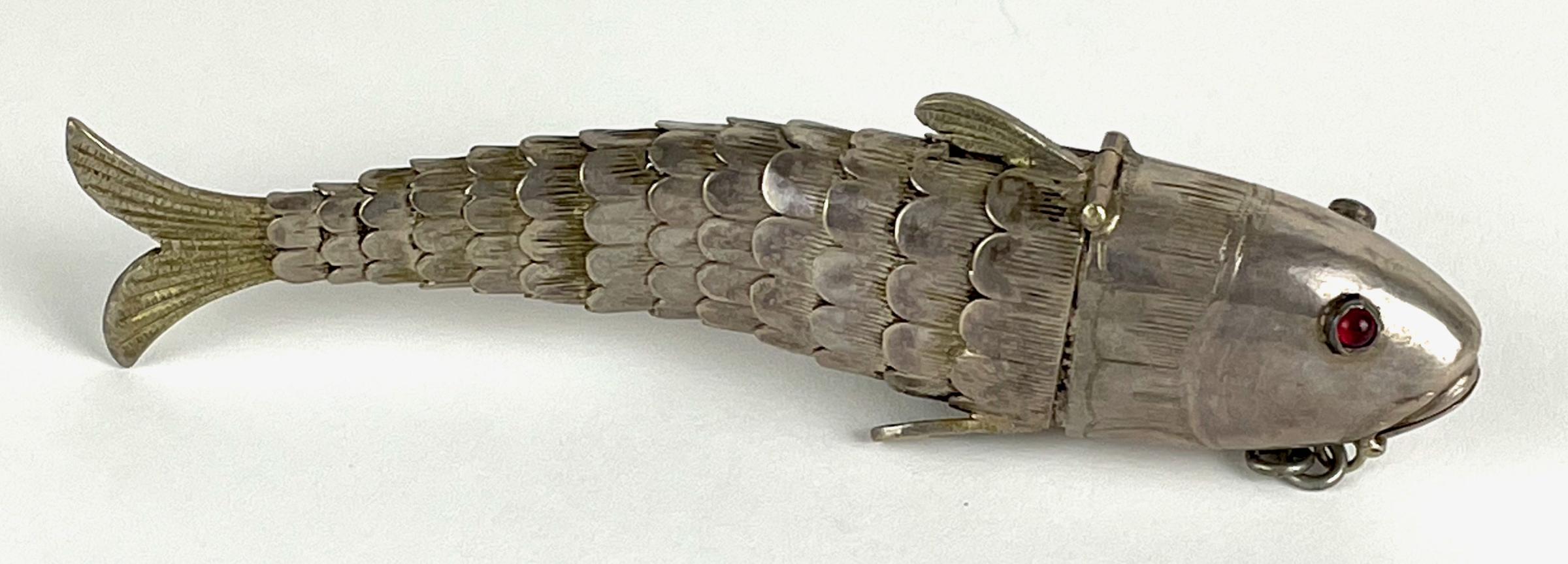 The fish bears pseudo-hallmarks inside the hinged head.