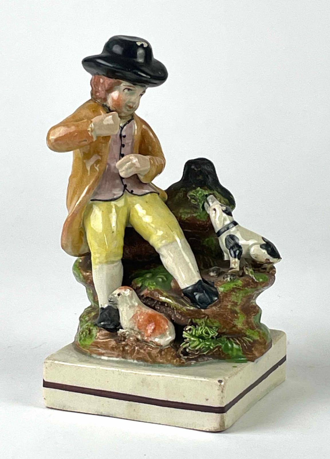Figurine, seated young man with dog and lamb