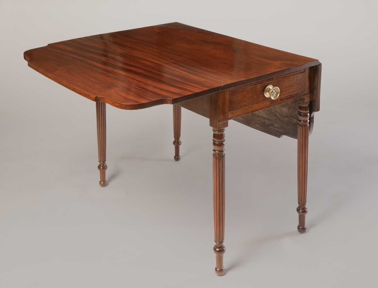 Mahogany; cherry (flies), tulip poplar (drawer sides and table framing), white pine (drawer bottom)