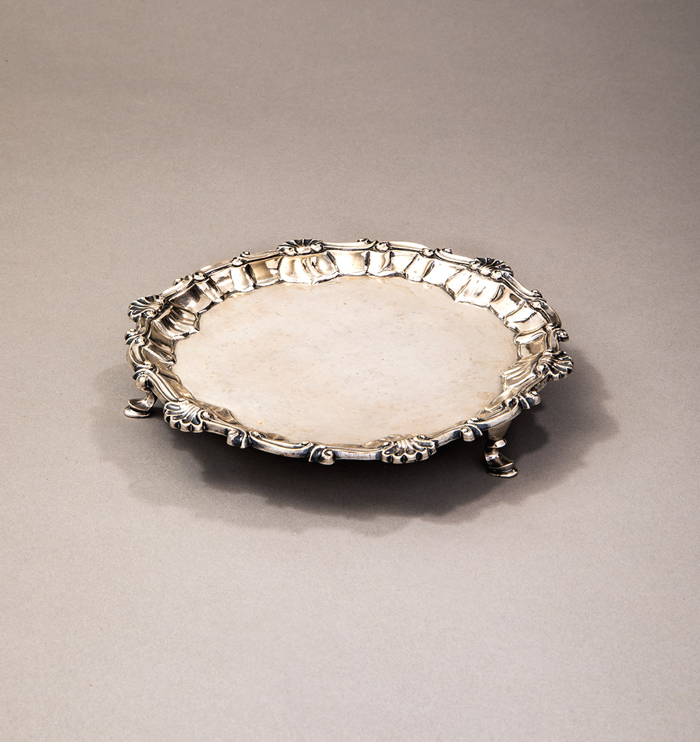 This elegant salver, also called a waiter, was made by Richard Rugg, who seems to have specialized in salvers, as did his contemporary Robert Rew (mark entered 1754), to whom the salver was previously attributed. Used underneath tea- and coffeepots, they protected teatable tops from drips; they held sweetmeats and other delicacies; or they may have accumulated used spoons.