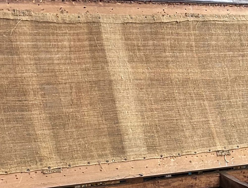The original linen and upholstery straps for the sofa back remain in place.
