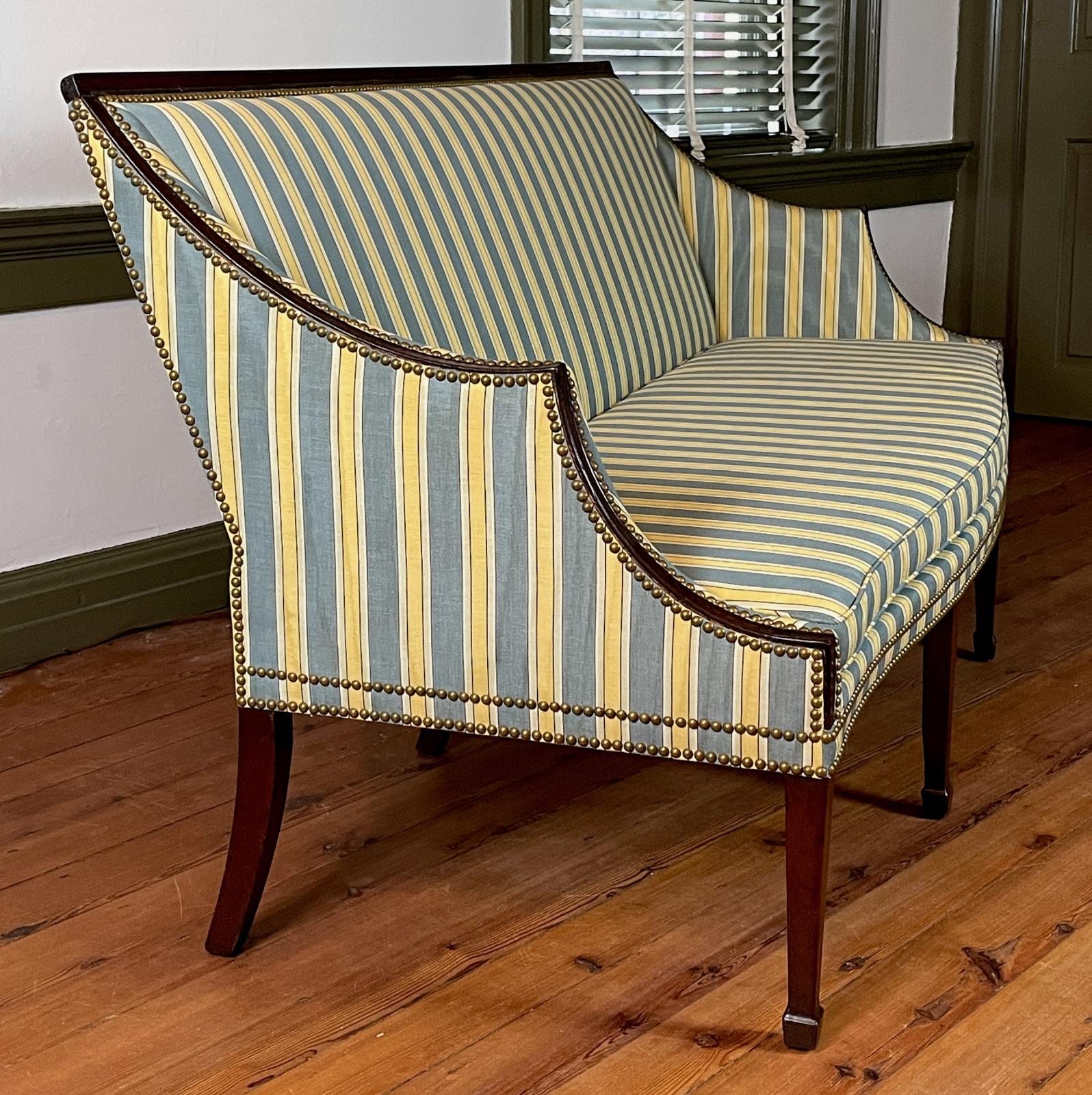 The sofa is a stylish example of Philadelphia federal work. Research to date does not indicate a likely maker.