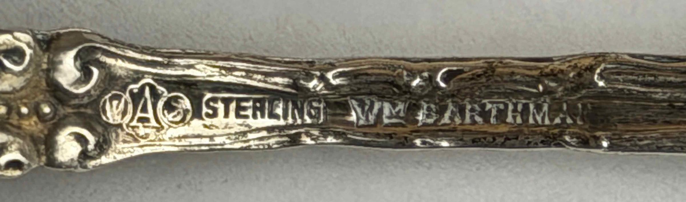 “Asheville N.C.” is across the top of the mountain scene in the bowl. “PAT. 1893” with “RW&S” and “STERLING” are stamped into the back of the handle.