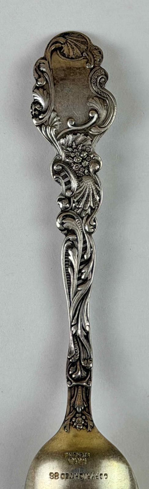 "DEVIL'S LAKE" is in the bowl. “COPYRIGHTED 88” is on the underside of the bowl above Gorham touchmarks with “STERLING” closest to the handle.