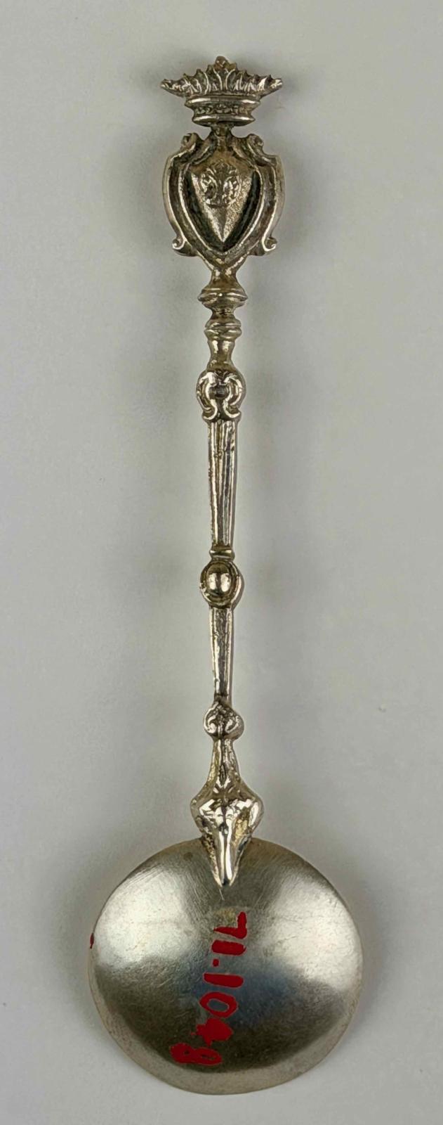 The spoon has a slender shaft, characteristic of European souvenir spoons.