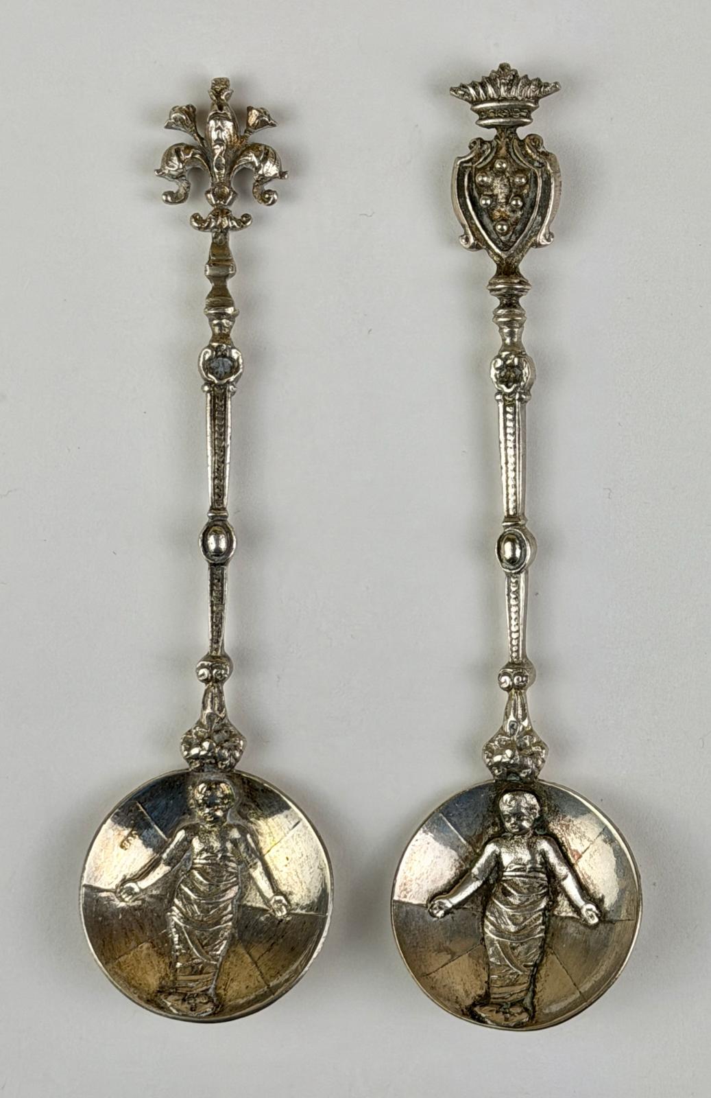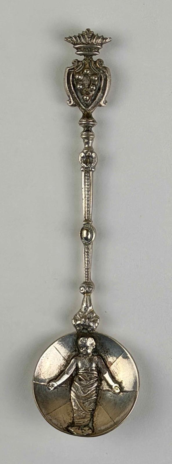 The bowl of the spoon has a relief image of the Christ child in swaddling, taken from a stucco relief made by Luca Della Robbia in 1463-1466 for Brunelleschi's Hospital of the Innocents in Forence.
