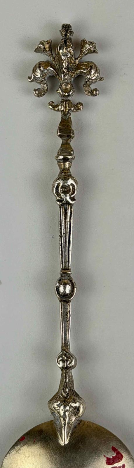 The spoon has a slender shaft, characteristic of European souvenir spoons.