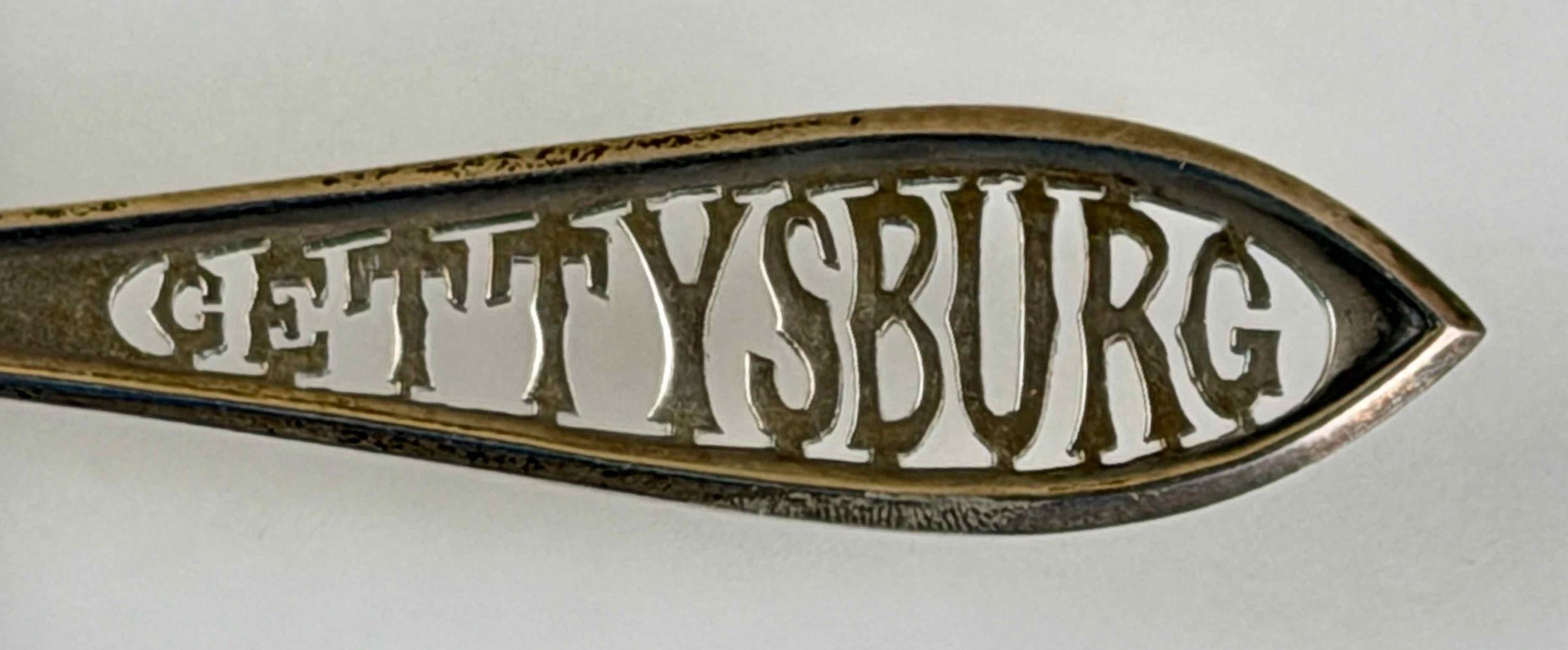 This simple, undecorated spoon has the name Gettysburg in pierced letters in the handle. Several different spoons with pierced lettering exist. The style of lettering is consistent with spoons made around 1900.