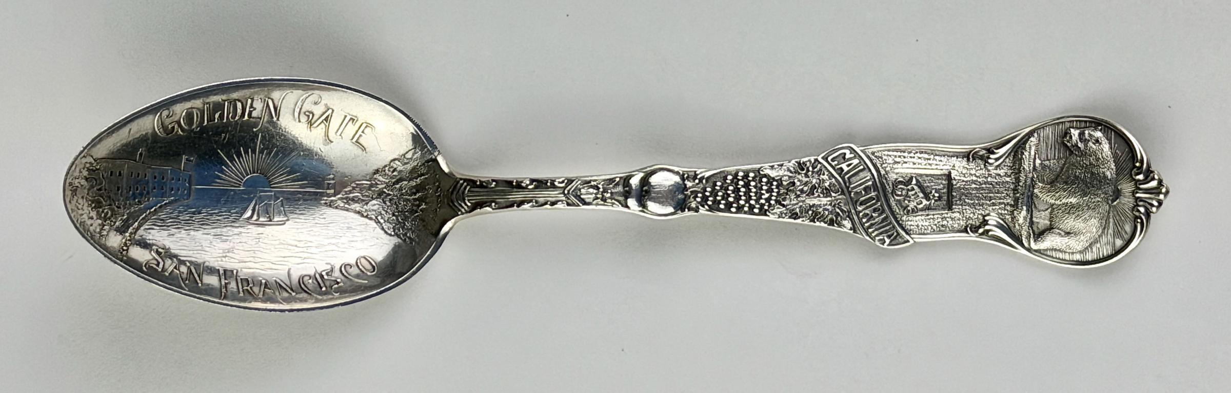 “GOLDEN GATE / SAN FRANCISCO” is on the bowl; “CALIFORNIA” is in a banner on the handle.