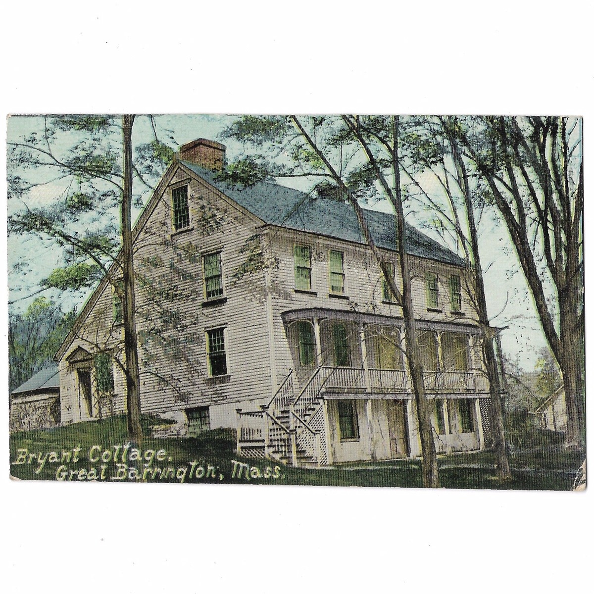 The spoon handle has an ornately foliated outline. The bowl has an image of a "saltbox" colonial house (having a straight roofline in the back) identified as that of the poet William Cullen Bryant (1794-1878). Identification of the house is complicated by his owning several summer houses as well as his NYC residence. This one was probably the house he owned while practicing law in Great Barrington. It is shown in photographs of 1903 and 1911, the latter after the ground floor was apparently excavated.