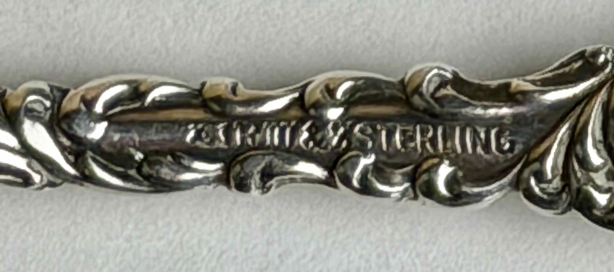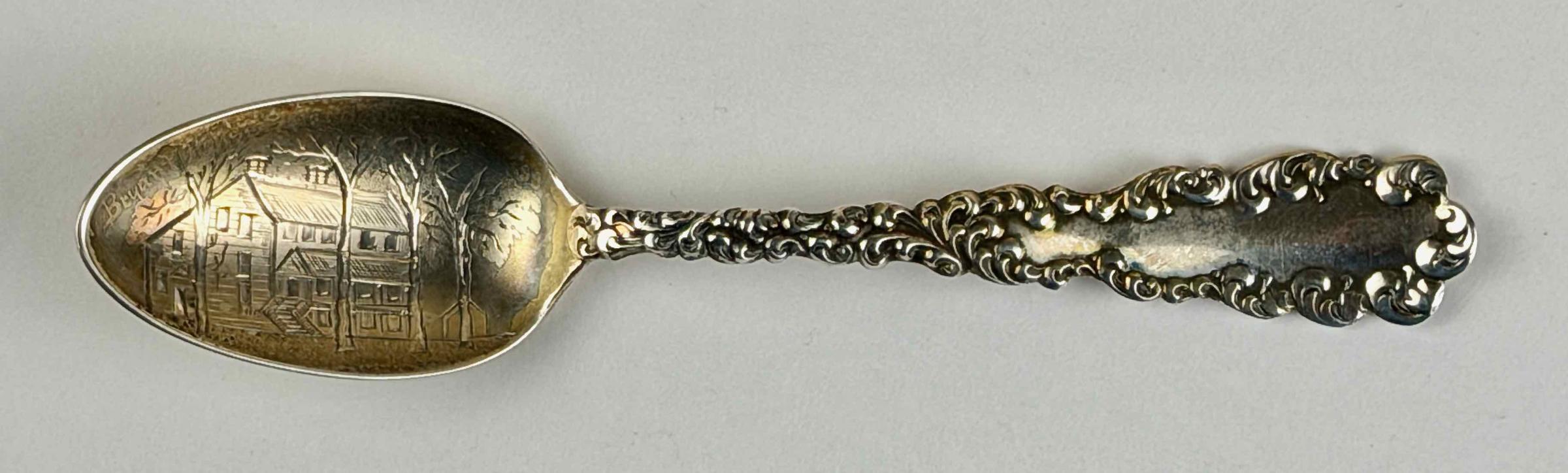 “Bryant House Great Barrington Mass” is across the top of the image inside the bowl. “RW&S” and “STERLING” are stamped into the back of the spoon.