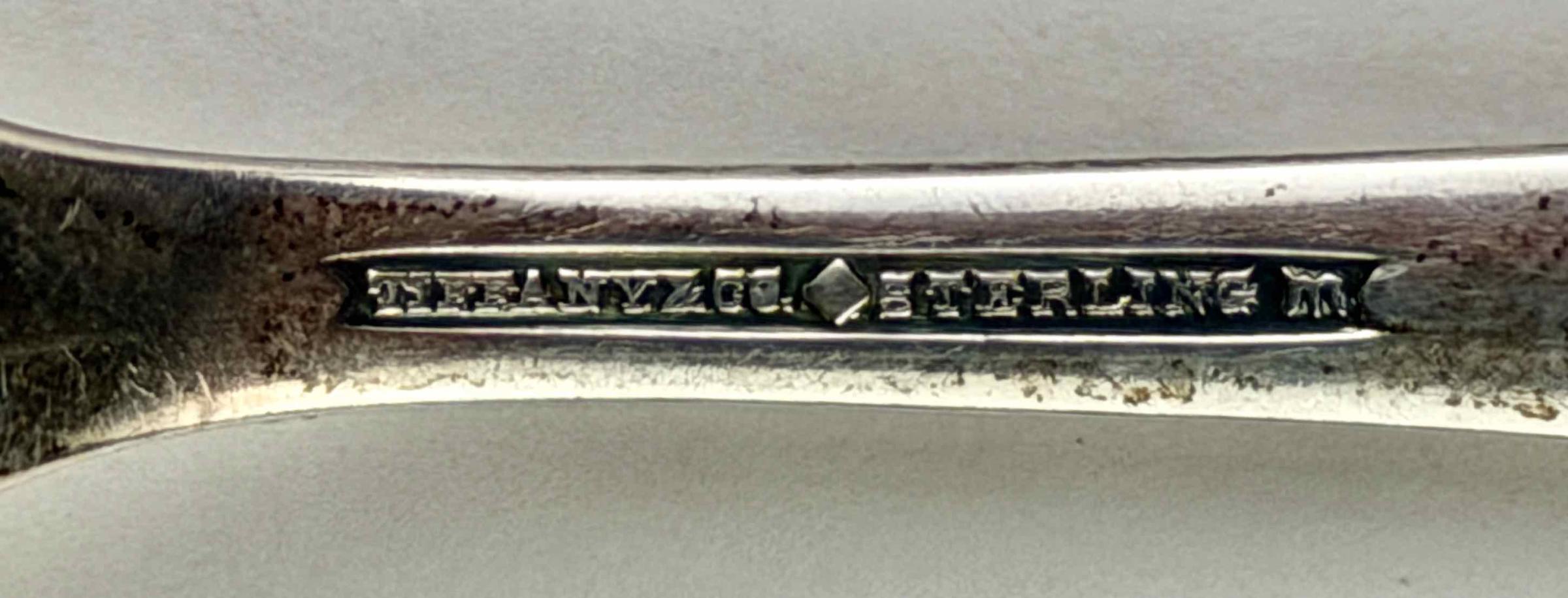 “TIFFANY & CO. STERLING m” is stamped into the underside of the handle.