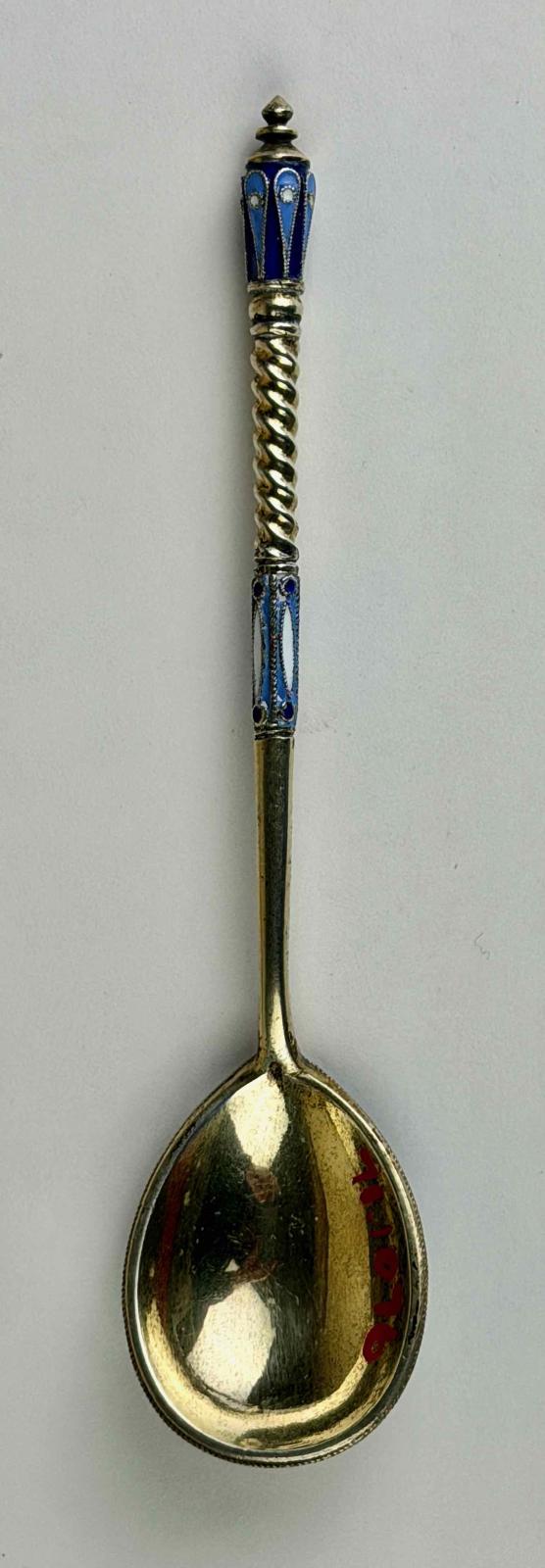 The "84*" mark on the spoon handle may a Russian indication of the silver purity of 84 zolotnik or about 875/1000 silver.