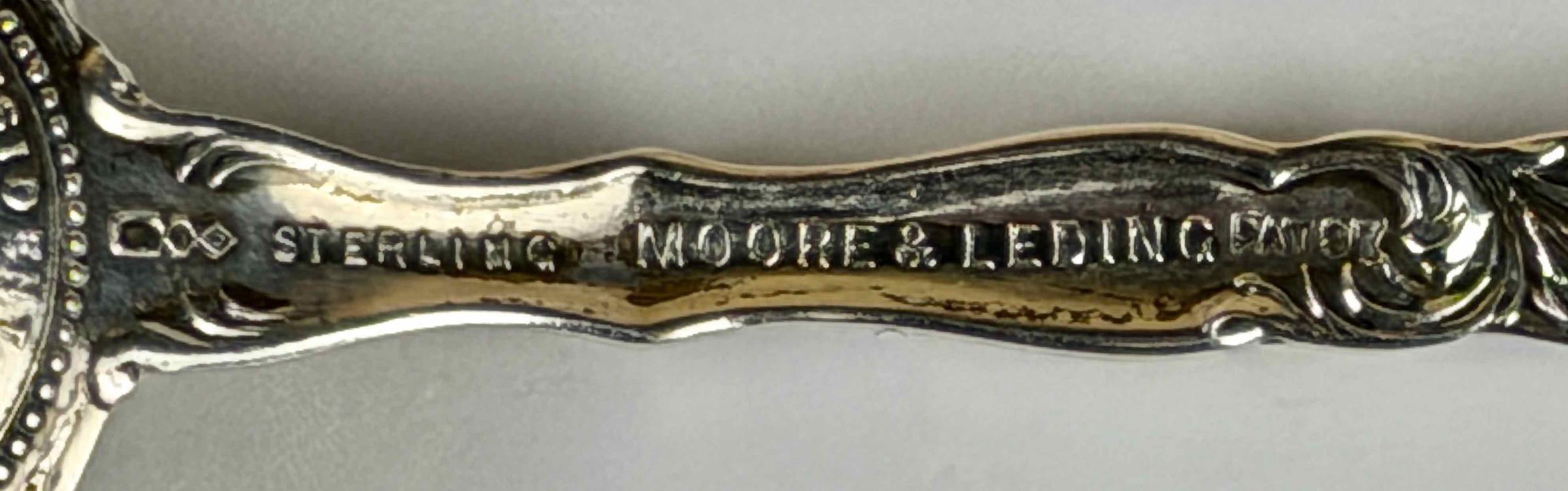 “STERLING / MOORE & LEDING / PAT 9[?, probably 7]” are on the back of the handle.