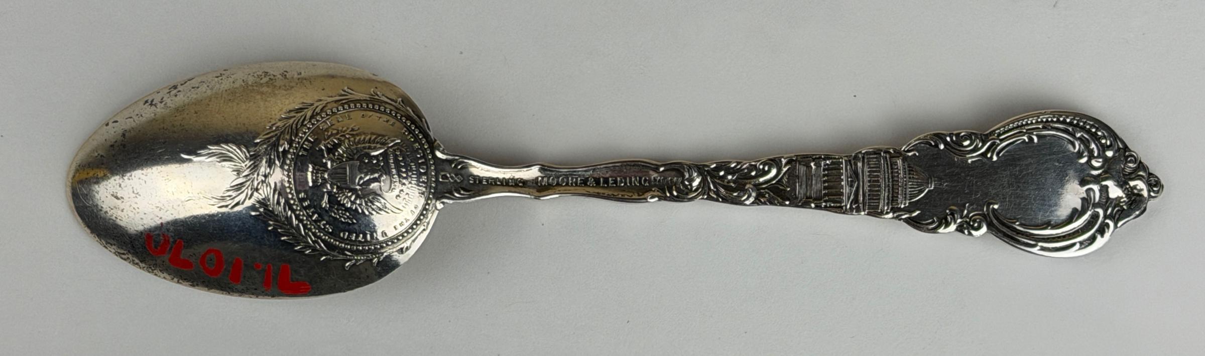 The spoon celebrates the 1896 election of William McKinley (1843-1901). It features the Presidential Seal on the underside of the bowl and an Image of the Capitol on the back of the handle. On the face of the spoon are “PROTECTION," "PROSPERITY, and “SOUND MONEY,” all catch-words of McKinley's campaign. McKinley was inaugurated on March 4, 1897. 1897 appears to be the patent date on the back of the spoon and is when the spoon was most commercially viable.
