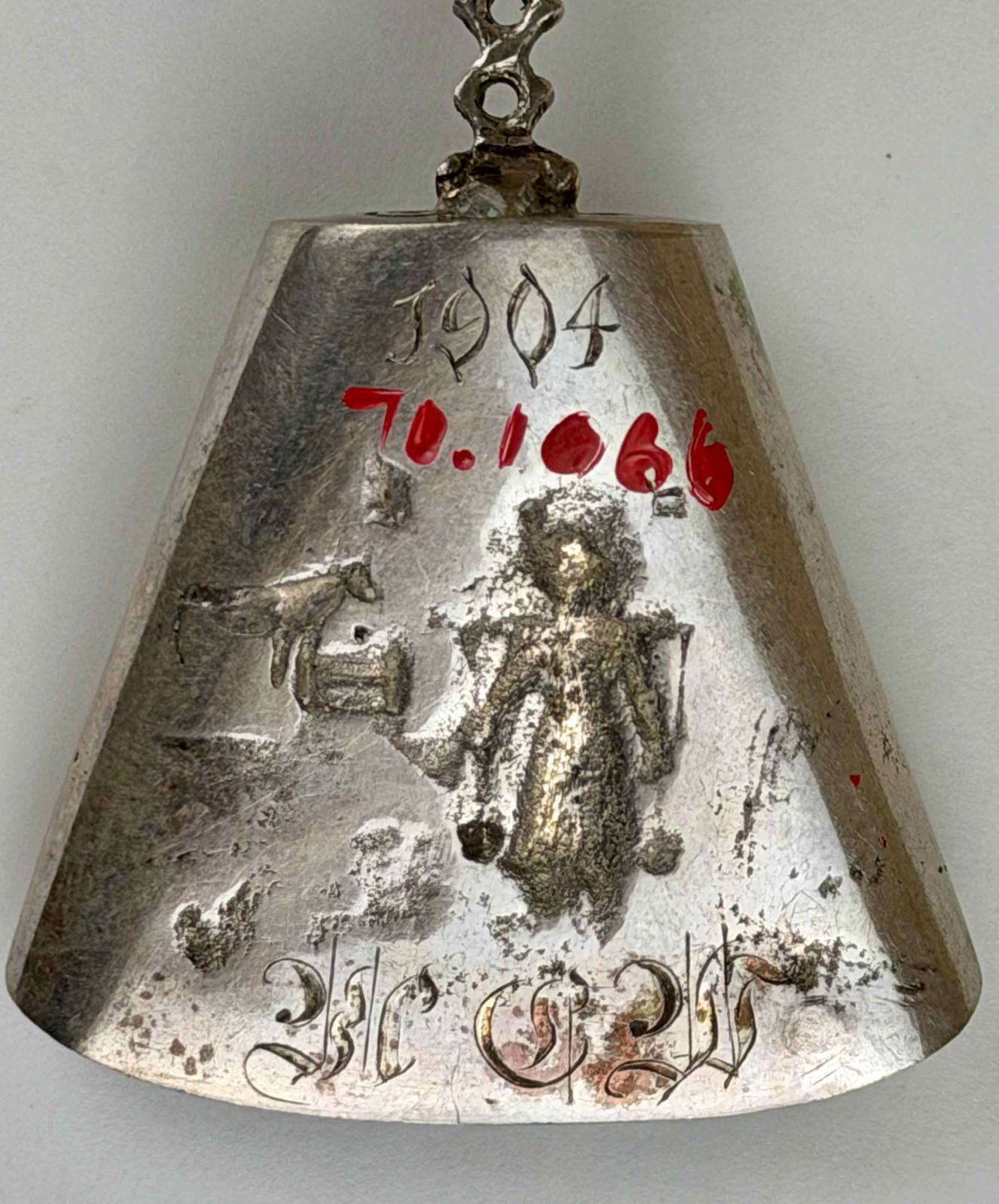 “1904” is engraved on the underside of the scoop at the top. Illegible initials are engraved below it.