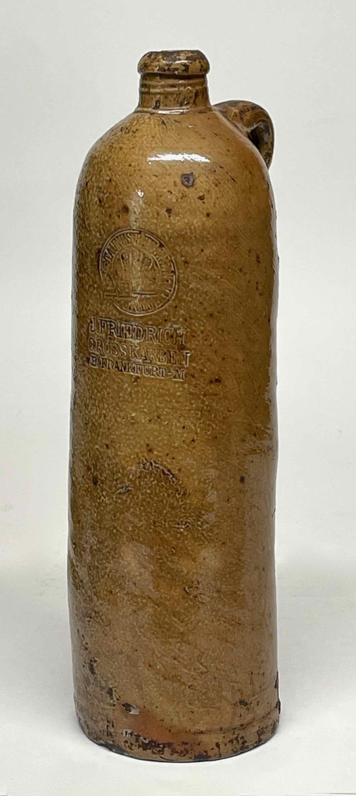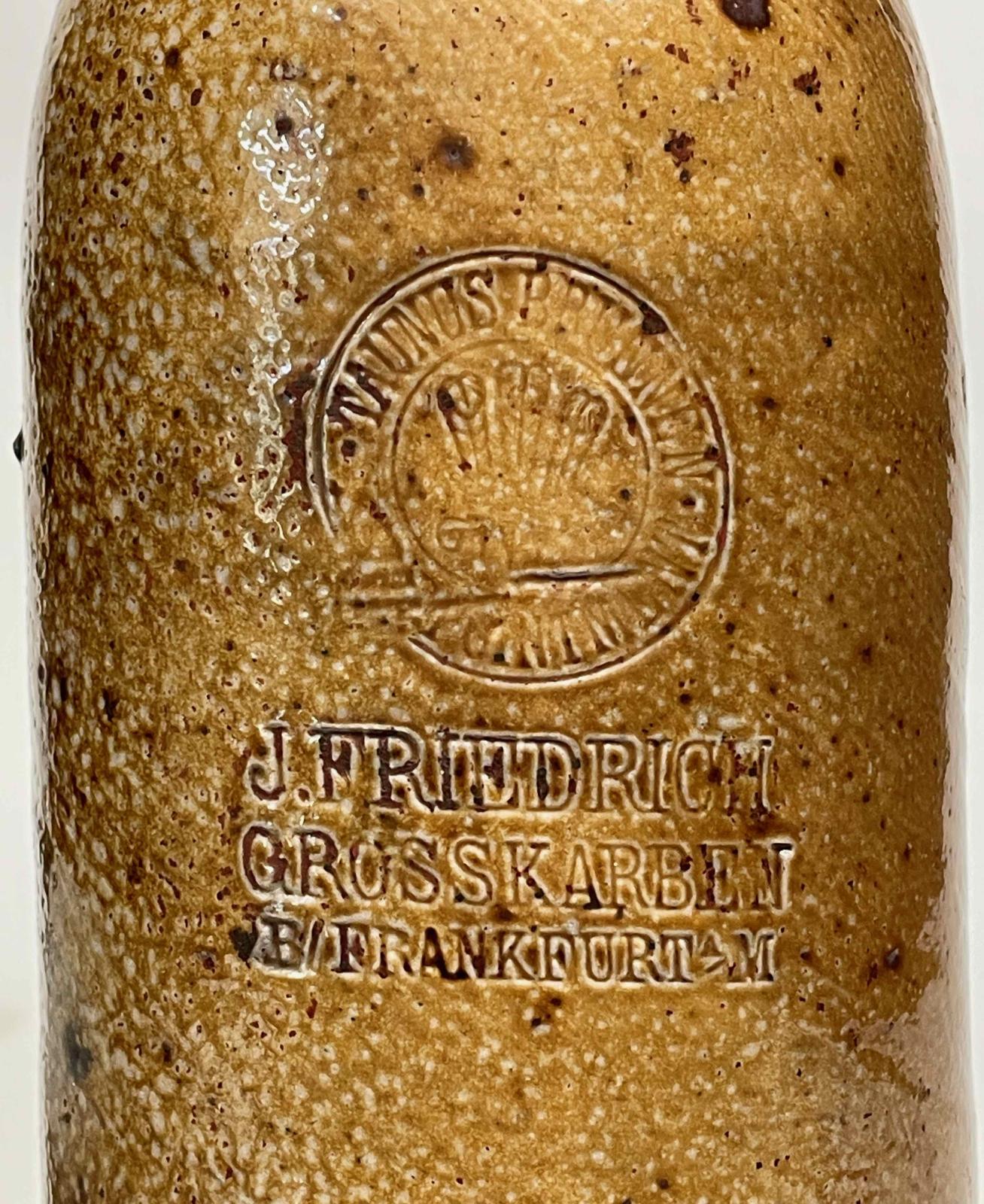 “TAUNUS BRUNNEN / [?] PONTMENT” in a circle bordering a central motif is stamped into the side of the bottle above “J.FRIEDRICH / GROSSKARBEN / B/FRANKFURTAM”; “9” is stamped under the handle.